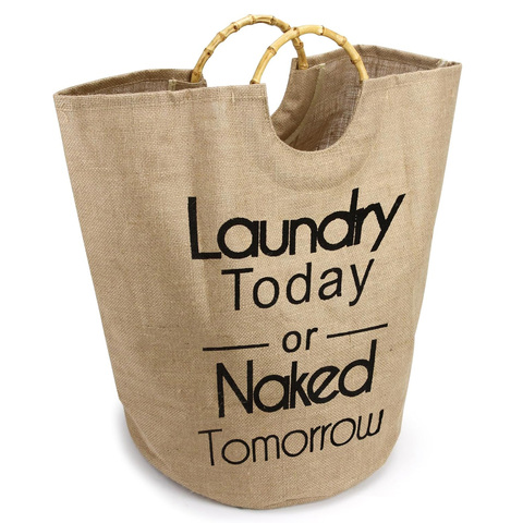 Cesta de ropa plegable con asa de bambú, cesto de lino y algodón impermeable para el baño del dormitorio del hogar